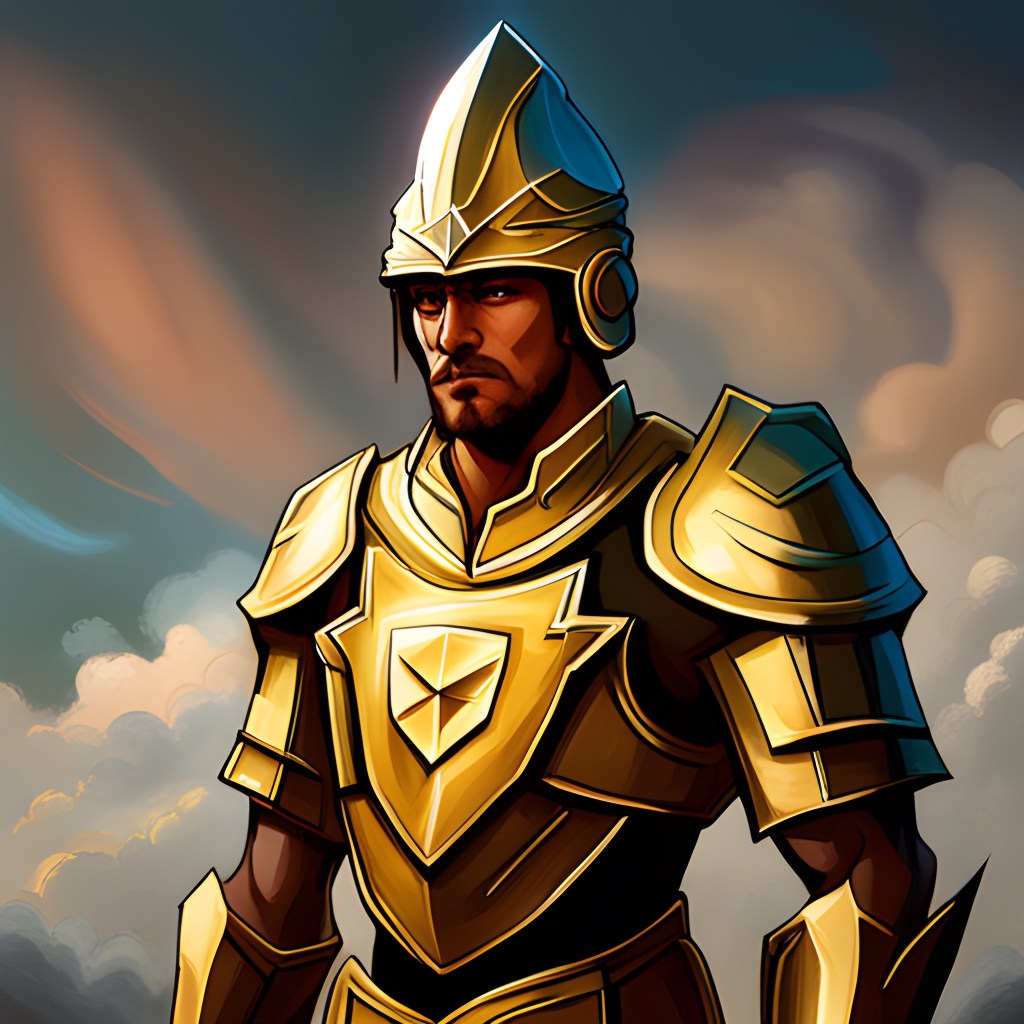 Startled from his thoughts, he turned to see the speaker. It was a man dressed head to toe in gold armor with a large gold broadsword in his hand.